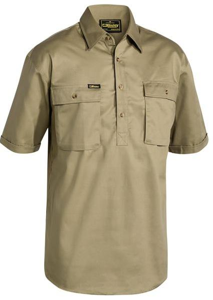 BISLEY CLOSED FRONT COTTON DRILL SHIRT S-SLEEVE