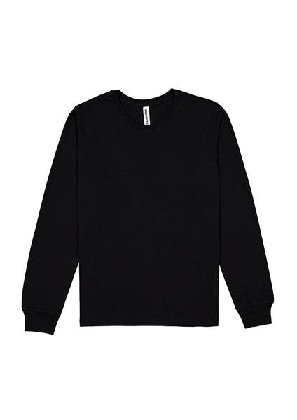 - Ribbed crew neck with set in long sleeve.