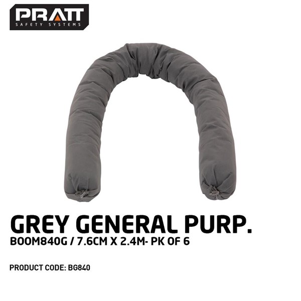 - General Purpose Boom colour coded grey for universal liquid spill absorption.