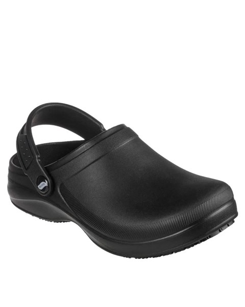 - Slip on supportive comfort before starting your prep work wearing Skechers Work™ Arch Fit®: Riverbound Pasay SR clog. This slip resistant clog features a sculpted flexible EVA upper with an Arch Fit® contoured footbed and a convertible heel sling strap.